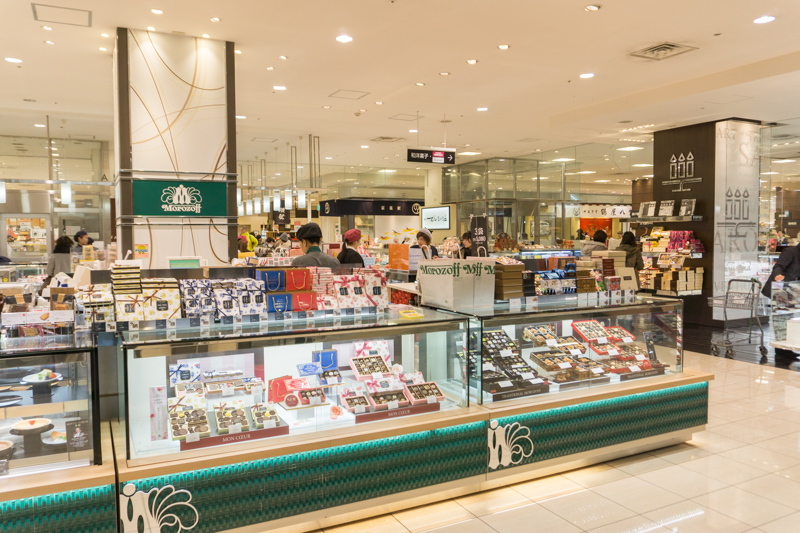 上の写真の百貨店入口から入り、正面モロゾフ右の通路を進みます。