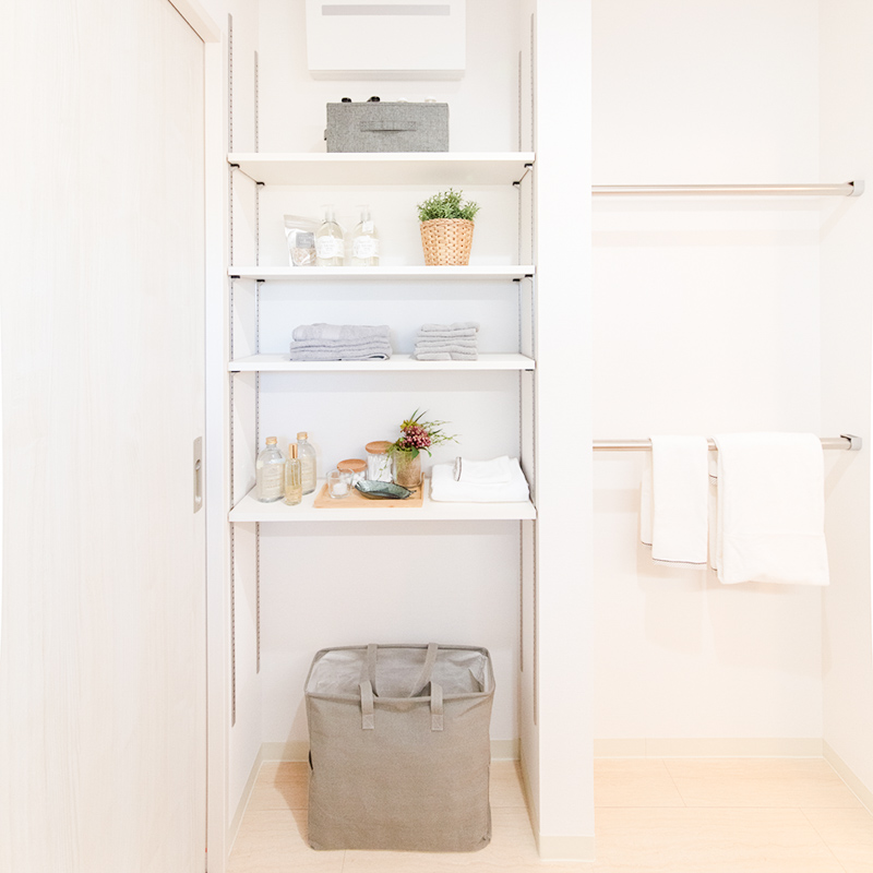 ポールが設置されているのでコートなども掛けておけて、ほぼ衣替えが不要に。