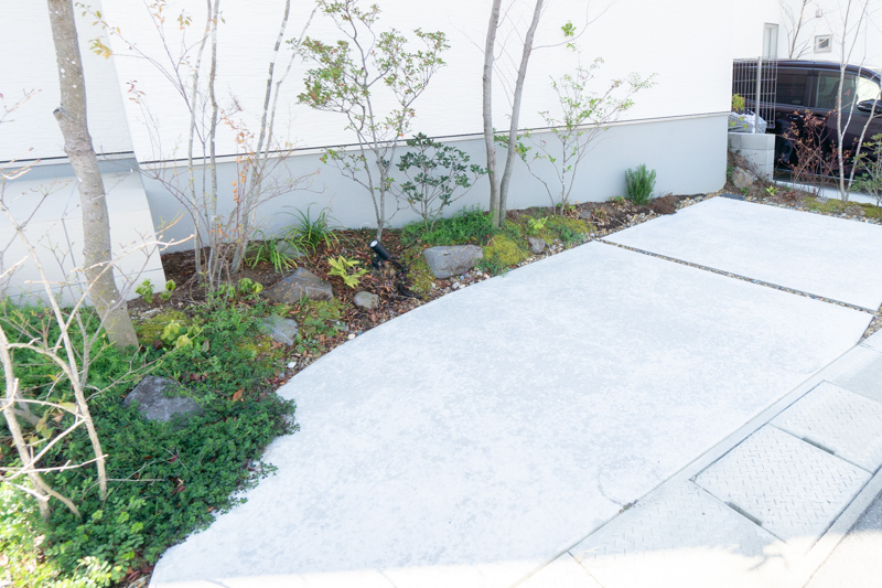 「このあたりは山も近くて環境も良いので、この場所本来の姿を想像して『原風景再生』をテーマに外構をつくっています