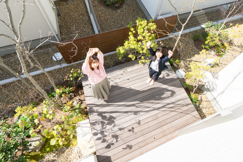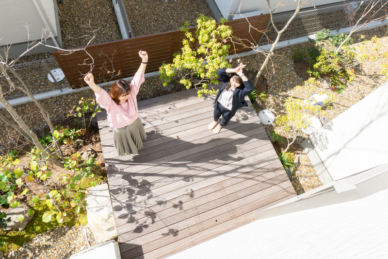 「全ての窓からウッドデッキや緑が見えるのって、すごく気分転換になりますね