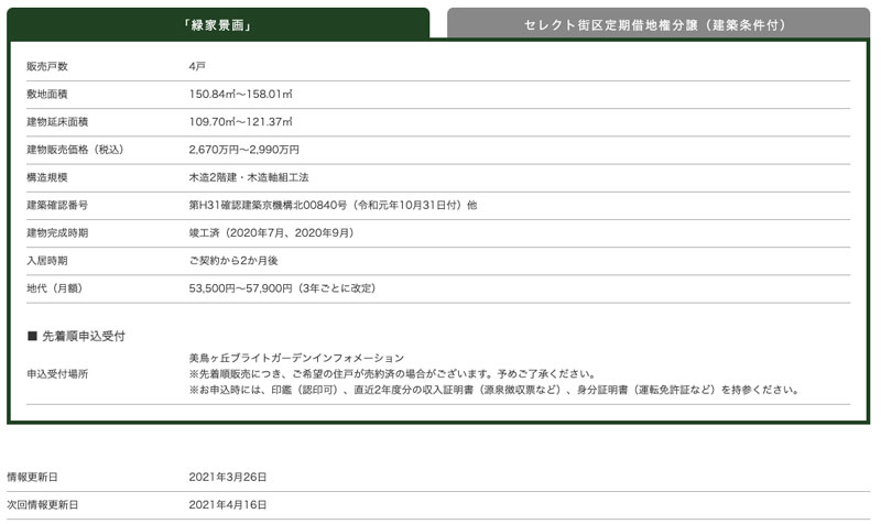 この美鳥ヶ丘ブライトガーデンは京阪定期借地権システム MIRAIS(ミライズ)という土地を借り、建物を所有する仕組みになっているそう。