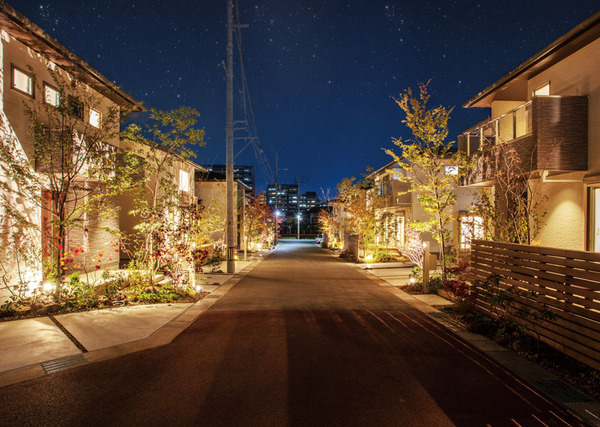 『緑家景画 ryokuka-keikaku』という名がつけられていて、プライバシーを守りつつ、街区全体を庭と照明のプロが一緒にプロデュースしているんだとか。