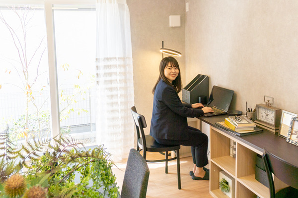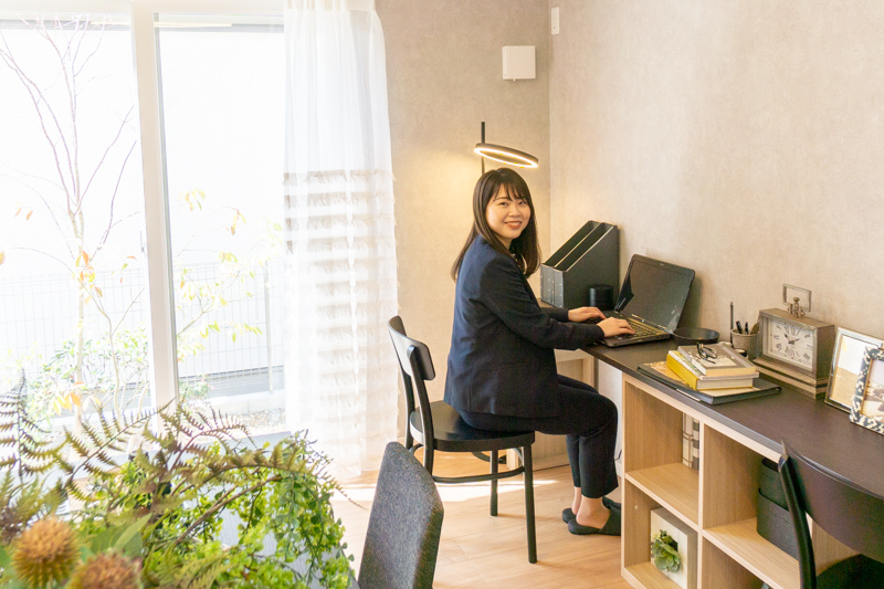 「私もリモートワークするんですが、ダイニングの机だとテレビが見たくなったり、イロイロと気が散るので、壁に面しているのは集中できそうですね!」