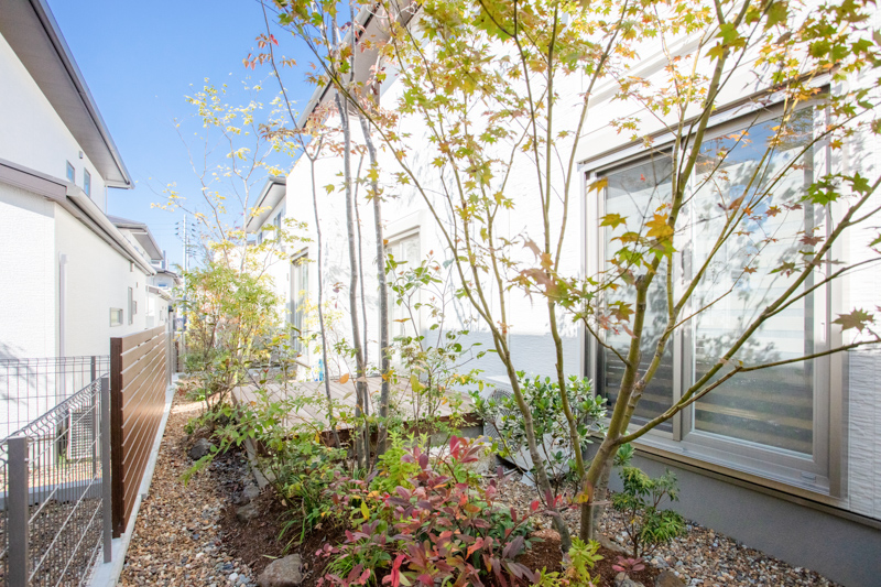 「たとえば、隣のお家からも庭の緑が見えるようにしているので、お隣の庭の緑を借りながらその先の奥行きも感じられるようになっているんですよ」