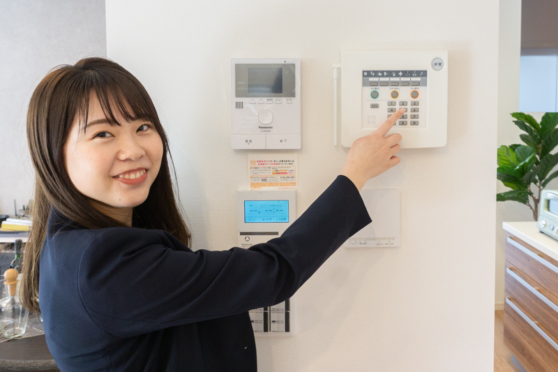 これで在宅時・外出時に合わせて操作していただくと万が一侵入者などがいたら音声で知らせるとともに、警備センターに通報をしてくれるんです。
