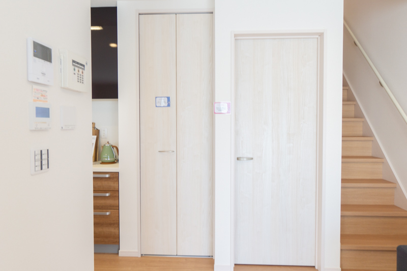 壁紙が違う部分は、エコカラットという湿度調整・脱臭効果がある壁を使用しています![]()