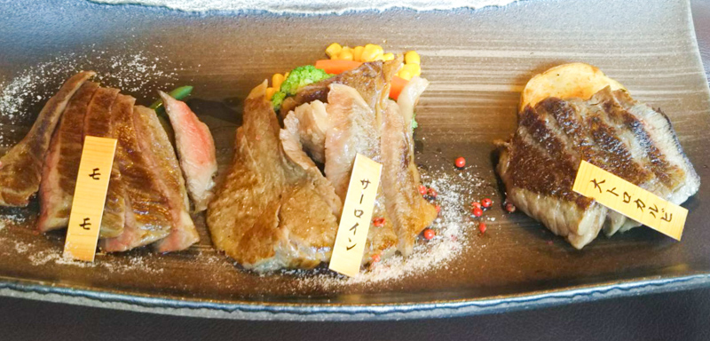「牧場なのでもちろん牛がいます。黒毛和牛の牧場で部位違いでお肉を楽しむことができるんですよ。あ、これは僕がお昼ご飯に食べたお肉なんです」