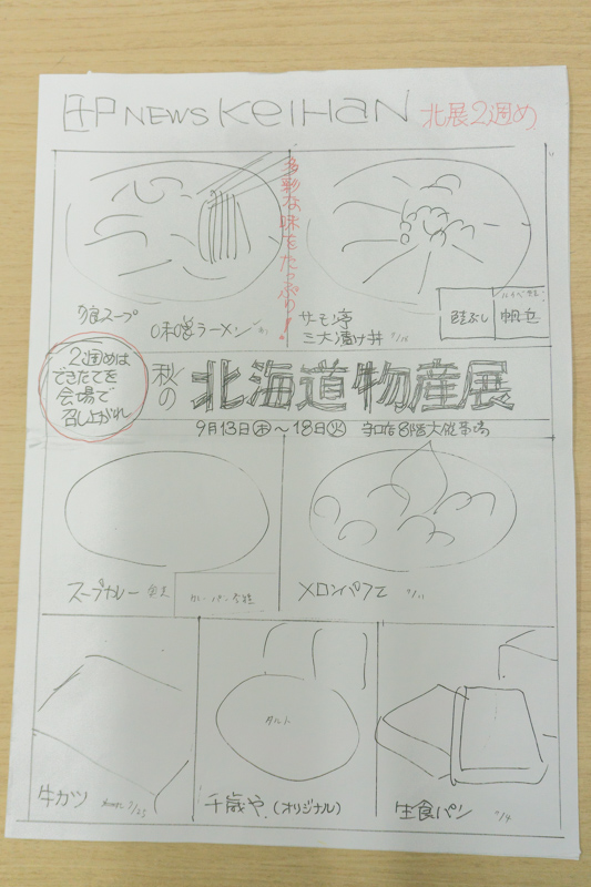 只今、北海道展に向けてチラシも作成中とのことで貴重なラフ案を見せていただきました!