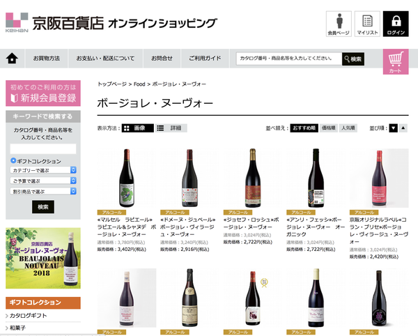 ▷京阪百貨店ボージョレ・ヌーヴォーオンラインショッピングはこちら
