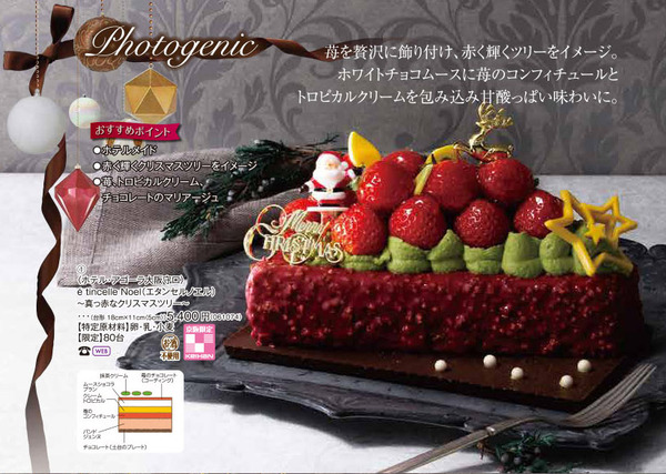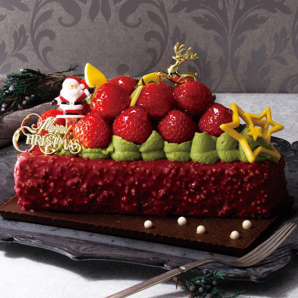 苺のコンフィチュールとトロピカルクリームをホワイトチョコレートムースで包み込んだ甘酸っぱい味わいがおすすめ。苺を贅沢に使用した真っ赤なクリスマスツリーケーキをお楽しみください。
