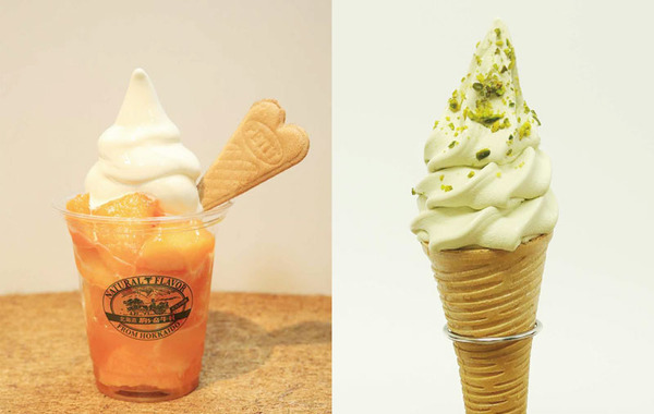 ちょこっと紹介しておくと、こちらは函館の森町にある牧場のソフトクリームで、富良野の有名な農家さんのメロンを仕入れてもらってコラボしてもらってる『富良野メロンパフェ』と、今回うちだけでやってもらう『Italianピスタチオソフト』です」