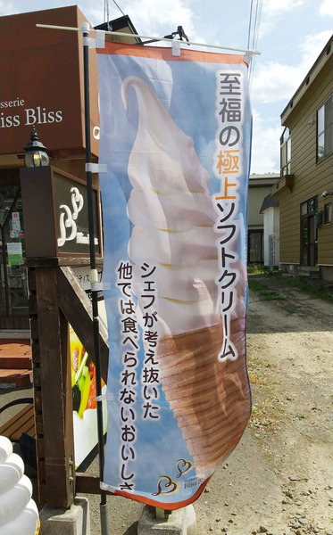 (ブリスブリスの店頭にはソフトクリームののぼりが)