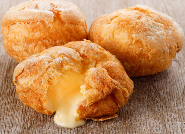 「こちらのシュークリームは、ひねりを入れず純良バターとカスタードで作ったクリームを生地に入れてます。