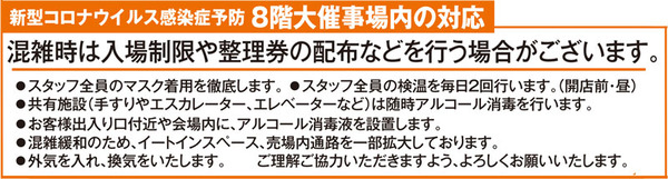 新型コロナウィルス感染症の情勢を踏まえ、お客様ならびに従業員の健康と安全を優先に、今後各店開催予定の催事やイベントにつきまして予告なく中止・延期・変更の場合がございます。