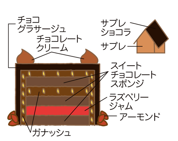 クーベルチョコレートとラズベリージャムを贅沢に使用した濃厚なザッハトルテの上に、ヘキセンハウスを飾ってクリスマスの夜を華やかに。