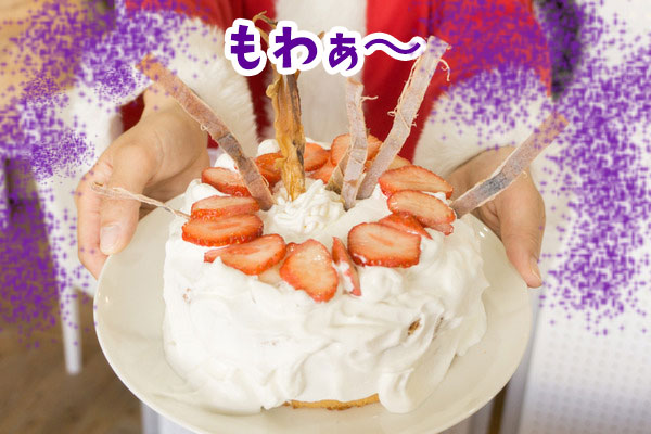 ケーキにスルメいかが刺さっとる…!!」