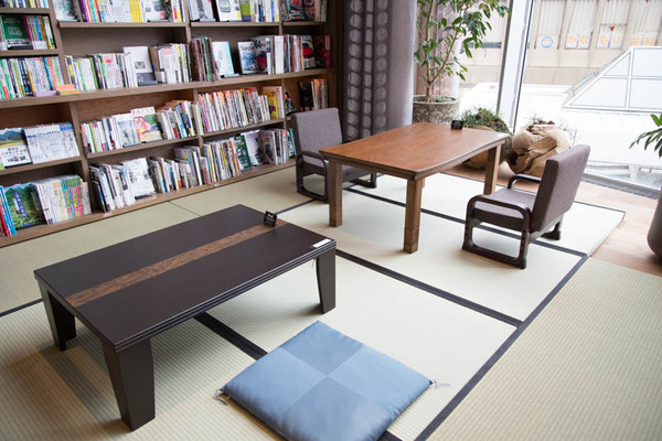 背の高い本棚にコタツに畳。