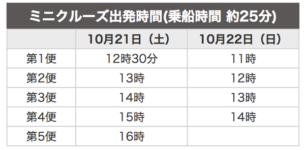 10/21(土)22(日)13時〜・14時〜・15時〜・16時〜(各30分)