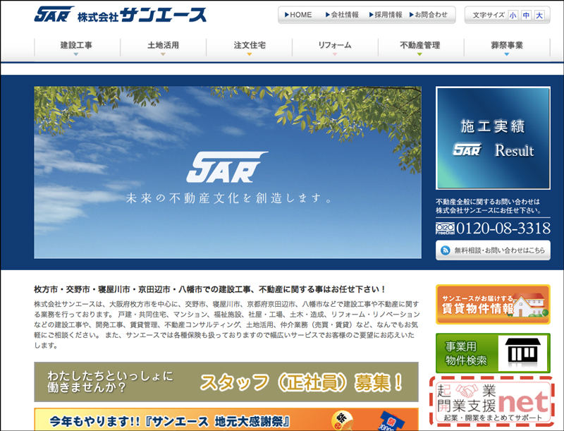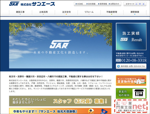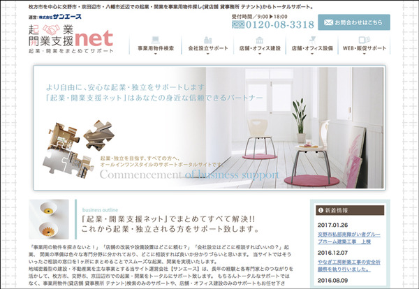 サンエースでは起業開業支援netという窓口を設け、事業用物件探しから店舗内装、さらには会社設立の支援までトータルでサポートしてくれます。