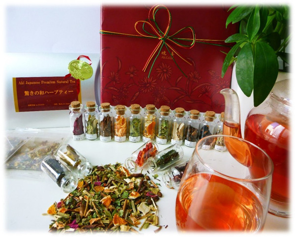 各地契約栽培100%国産の復活した絶滅在来種や危機種など、16種素材を使った和漢ブレンドティを販売。「世界健康博覧会」日本公式ブースで2年連続の日本代表商品として紹介されています。