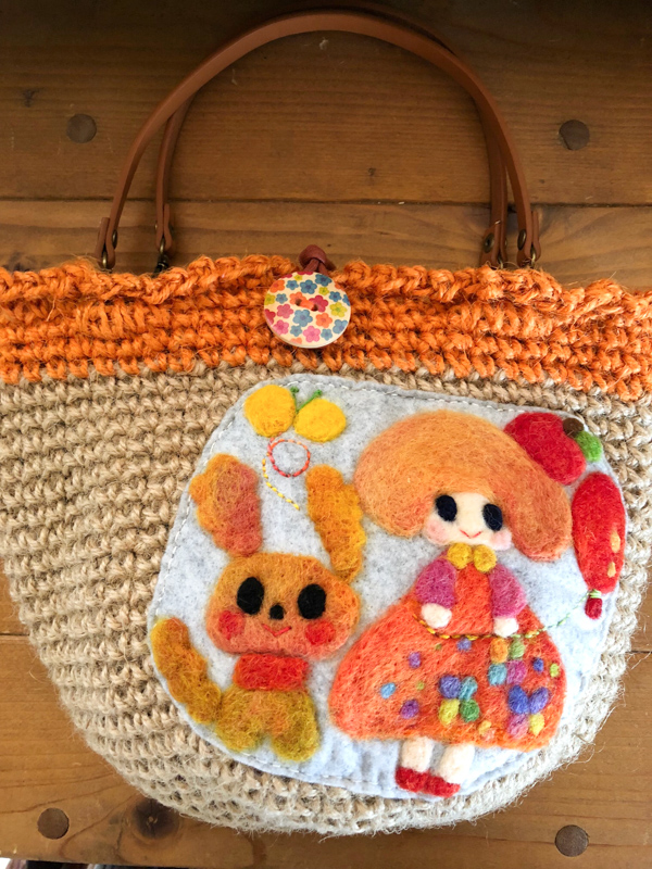 オリジナルキャラクターの羊毛フェルトモチーフ付きバック。