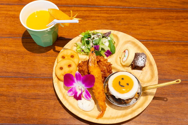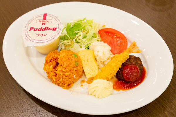 チキンライス・ハンバーグ・エビフライ・玉子焼き・サラダ・プリン