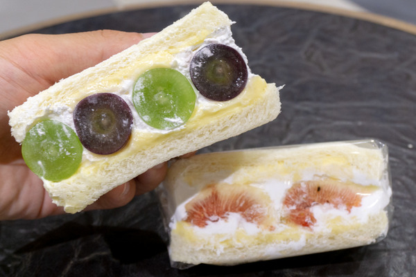 ぶどう・いちじくの2種類のフルーツサンドを買ってみたのですが、それぞれ具材が大きくサンドされていて、思っていたよりも甘さは控えめでペロッと完食![]()
