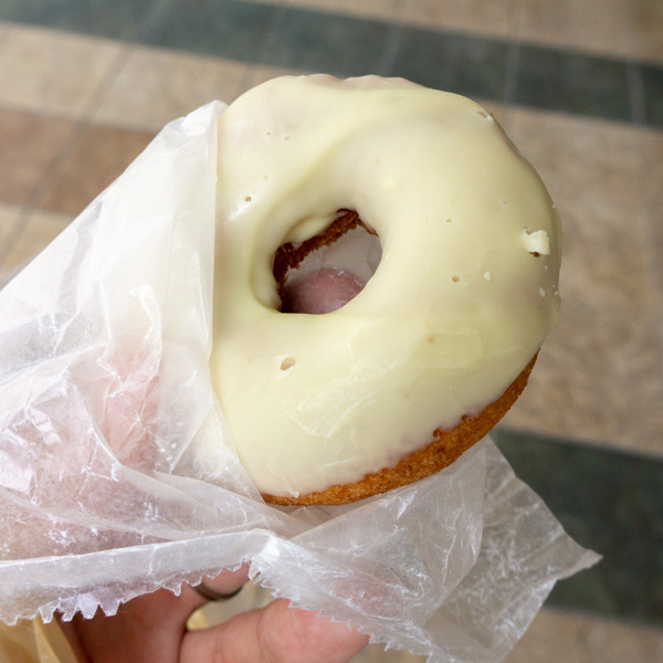 (到着早々に購入したホワイトチョコのドーナッツ)