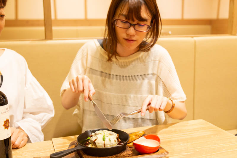 「ハンバーグもジューシーで美味しい〜!チーズがもうめっちゃ合ってます」