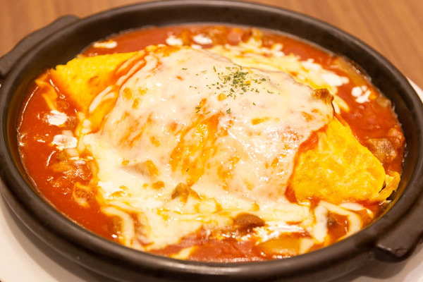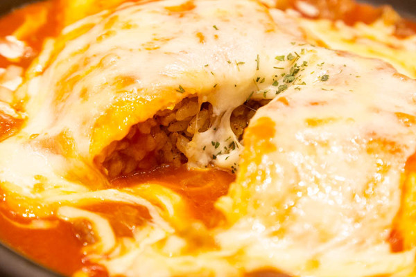 モッツアレラチーズと牛すじのトマトクリームオムライスグラタン