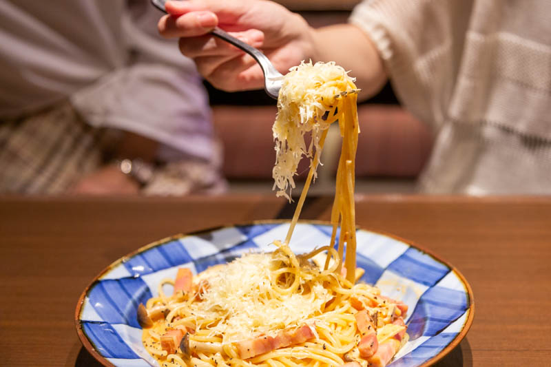 「パスタにチーズは鉄板ですね!家でもスライスチーズ乗せて食べます」