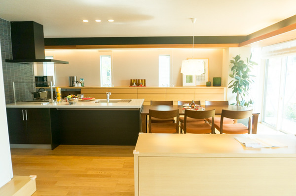 いつも宿題や勉強をこの広々なキッチンスペースの近くでしています。