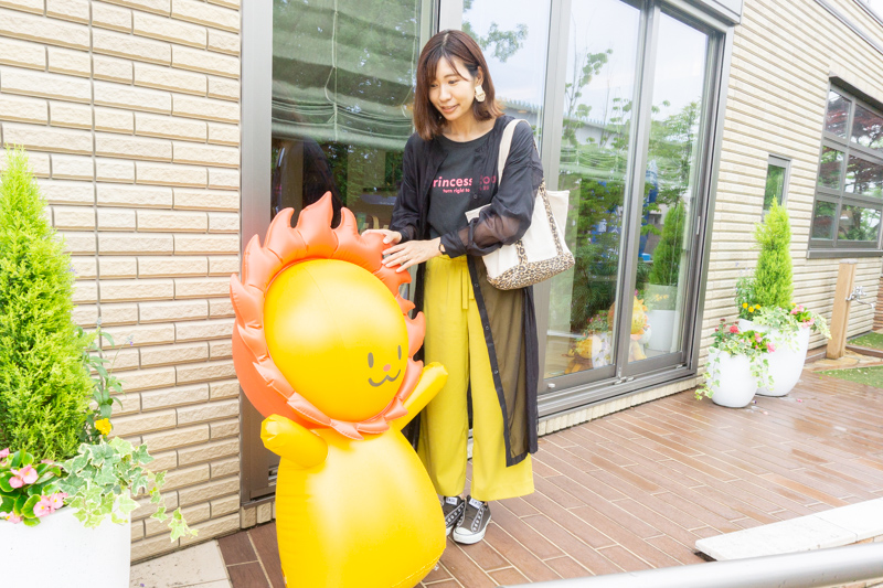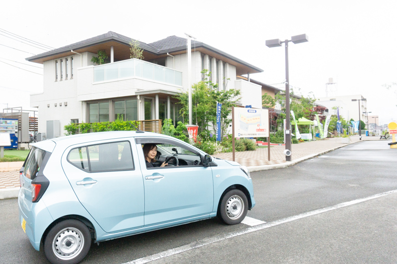 「車の出入口も入りやすい広さ。駐車場も広いので運転ヘタな私でも行けるっ