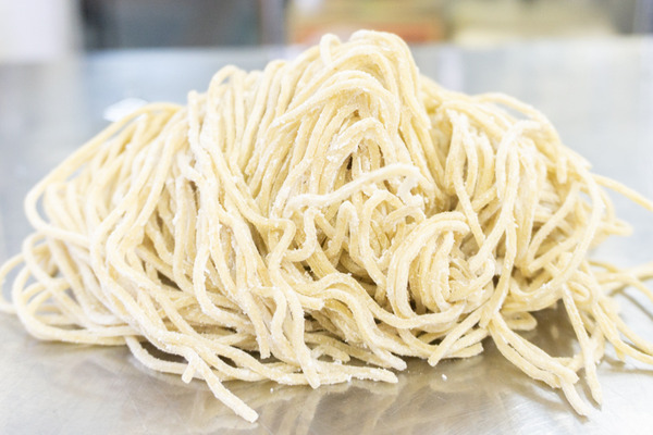 麺は小麦粉の全粒粉と石臼で挽いたドイツ産ライ麦を配合した自家製麺。