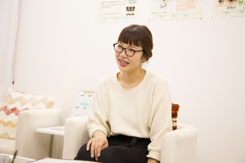 「前は美容室のアシスタントをしていました。エクステはずっと自分がしていたのでやってみたいなと思って。美容室と違ってアイリストは1から自分ひとりで提案できるので楽しいです。責任感はありますが」