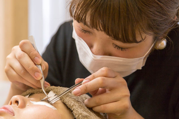 美容師免許がないとできないアイリスト。写真は施術中の原さん(以前、原さんが登場した記事はこちら