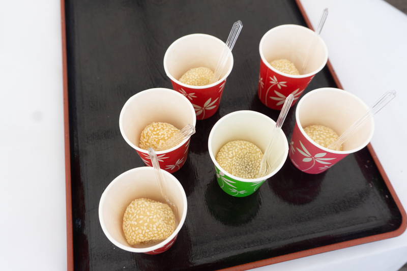 「ごま団子作ったんで、よかったら食べていってくださいね〜!!」