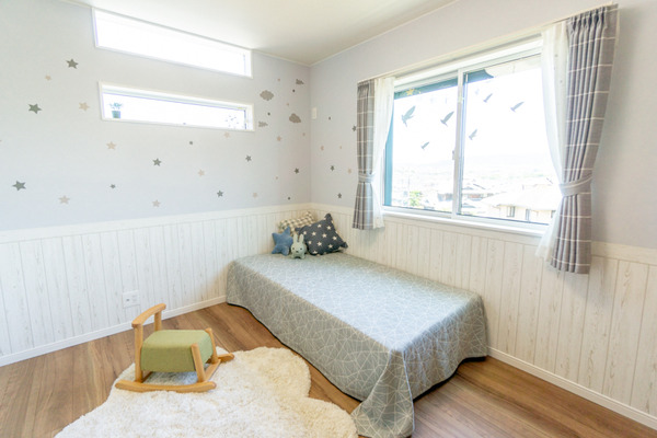 「他の2部屋の壁紙はこんな感じで可愛らしい雰囲気になっています。