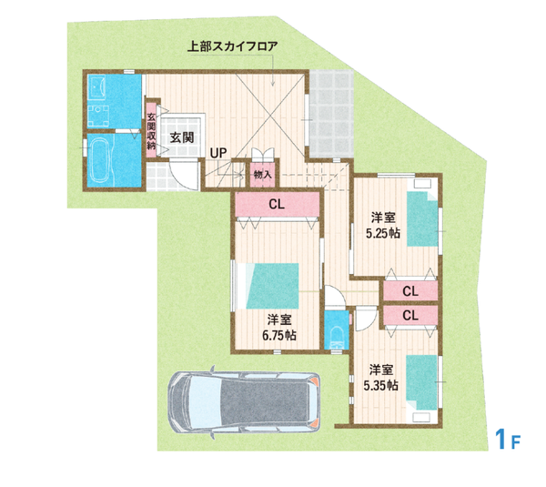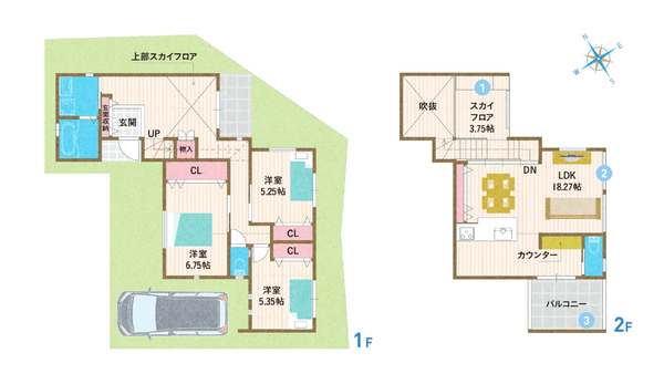 「戸建てだから開放感に加えて、こーんなスカイフロア(中2階)もつくることができます!」