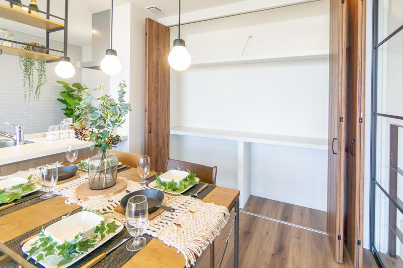 「それだけじゃなく、ダイニングのうしろには大容量の収納や…」
