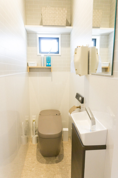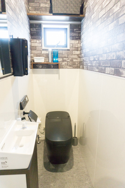 こちらはブルーグレーのトイレですか!いろんな色に出来るんですね〜。
