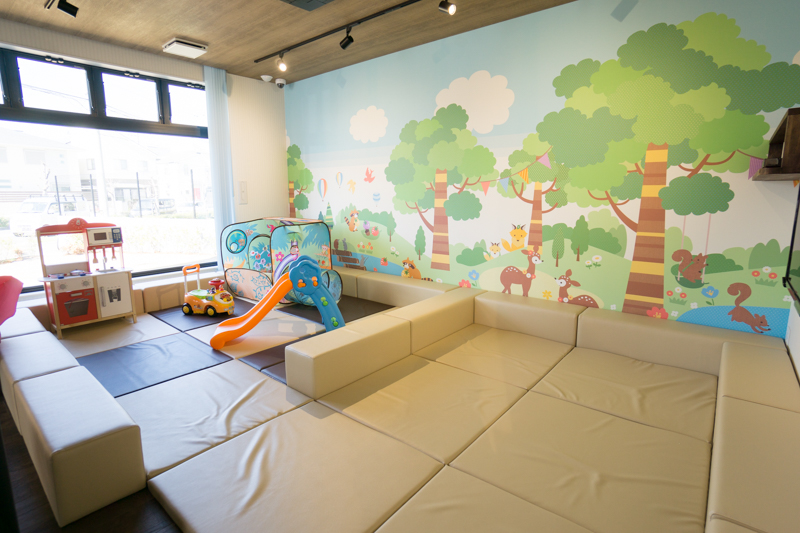 キッズスペースも完備しているのでお子様とご来店した際も遊んでいる様子を見ながらお話ができます」