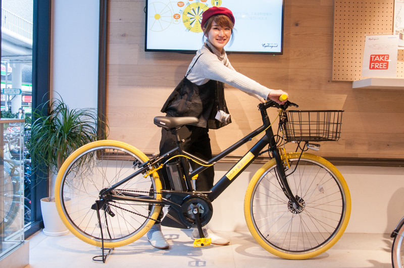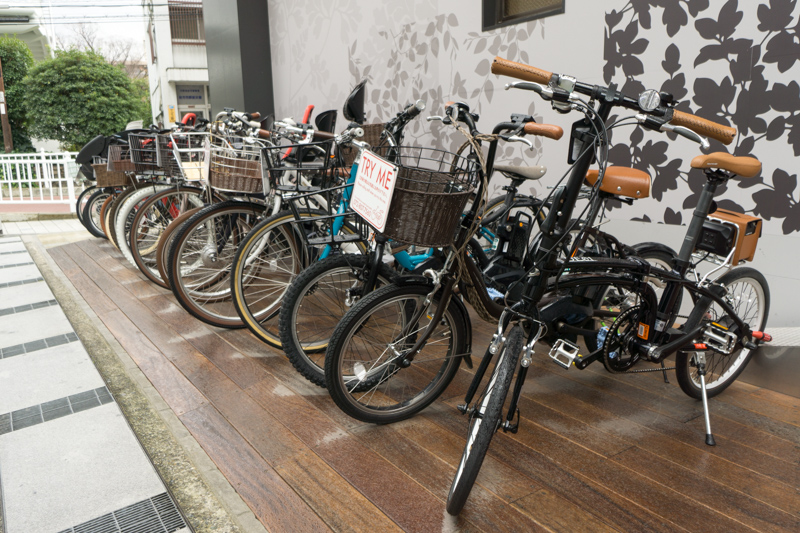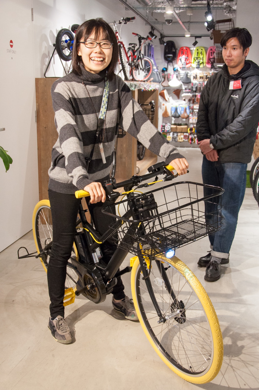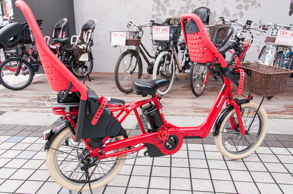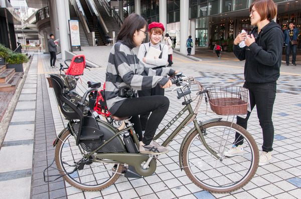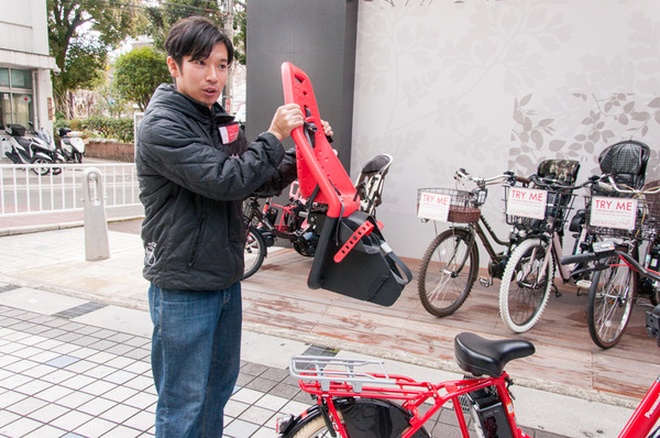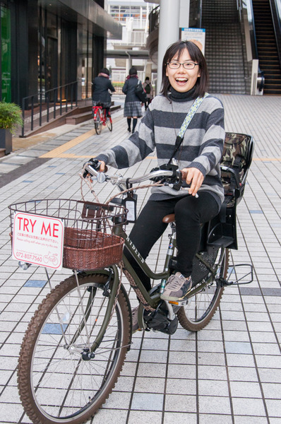 『 TRY ME 』の看板が前かごに付いている自転車が、試乗車の目印!