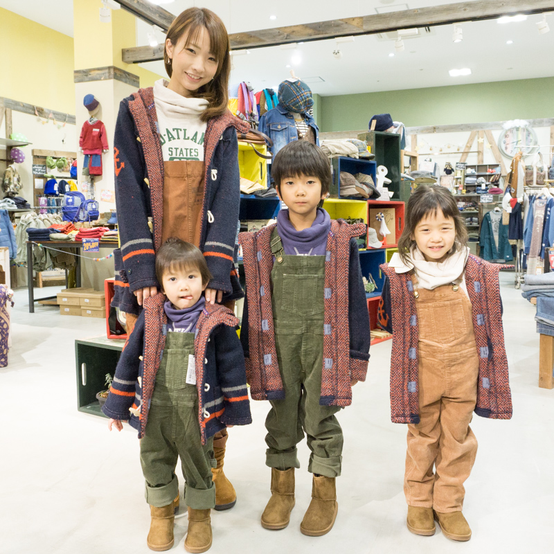 スタッフさんに選んでもらい、アウターから靴までお揃いで家族コーディネートしてもらいました!