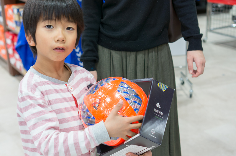 アディダスのサッカーボール(¥3,990)を選びました。ちなみにお姉ちゃんと弟ちゃんはキッズコーナーで楽しんでいました。