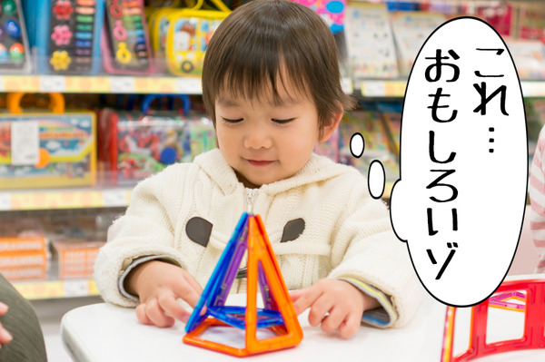 まずは平面、そして立体へと年齢に沿って遊ぶことができ、大人から子どもまで楽しめるプレゼントにもピッタリの商品。そらくんもさっそく夢中になって遊んでいます。