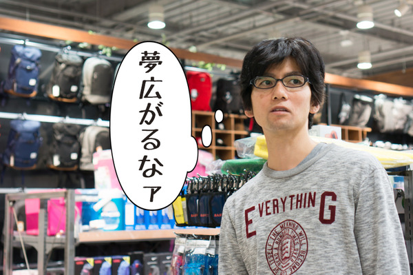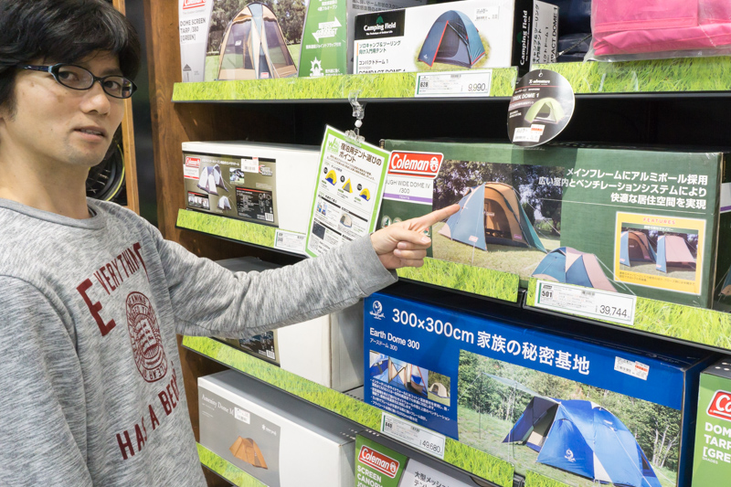 「バーベキューとかキャンプとかいいですよね〜」パパはアウトドアグッズが気になるようす。