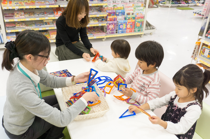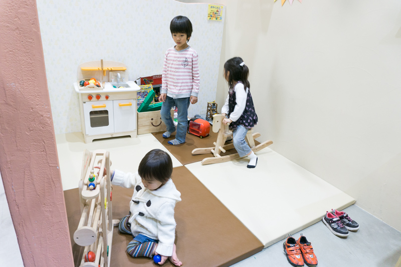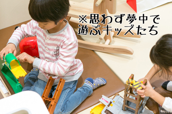 みんなおもちゃに夢中。キッズスペースでお子さんを遊ばせておいて、ママとパパでゆっくりお子さんの服を選ぶことができます。
