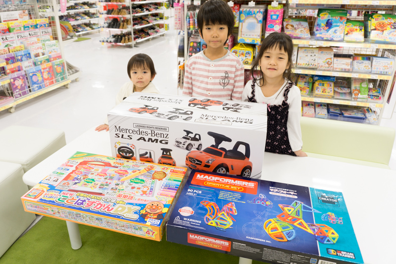 先ほどご紹介した「マグ・フォーマー」に加え、「にほんご えいご ことばを育む アンパンマンおしゃべりいっぱい!NEWことばずかんDX」、「乗用メルセデスベンツ」も選びました!