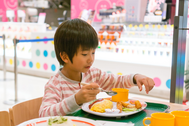 フードコートで夜ごはん。ちょっとした休憩や家族で好きなものを食べる時にはぴったりですヨ。